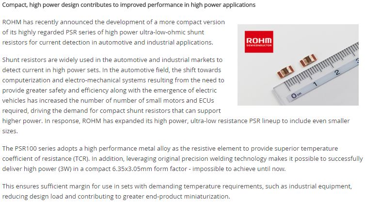 - ROHM New Ultra-Low-Ohmic Shunt Resistors for Automotive Systems and Industrial Equipment